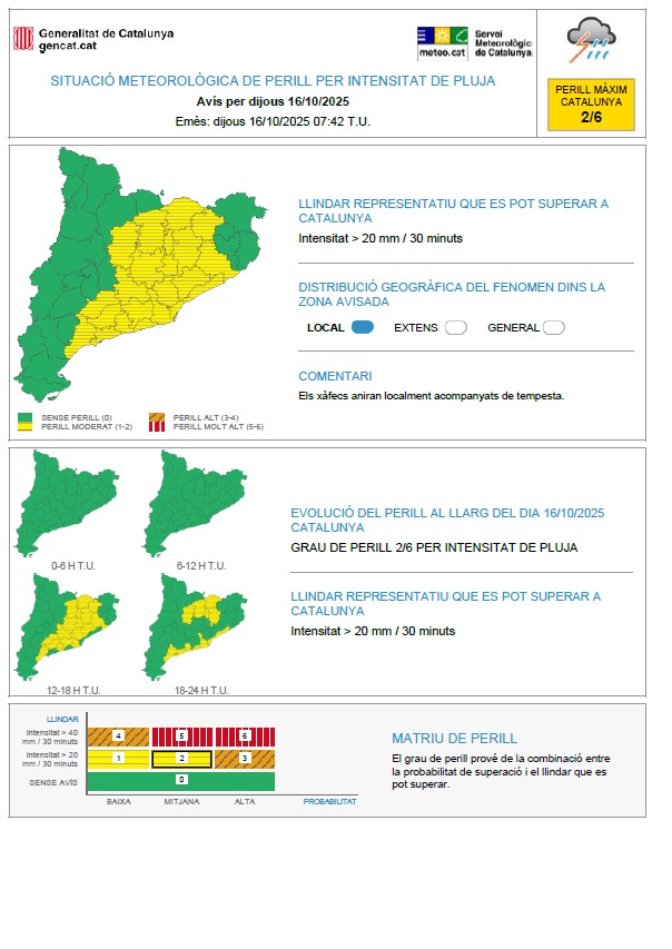 Vilassar es manté en fase de prealerta del pla bàsic d'emergències municipal per les pluges intenses previstes per dijous 16 d'octubre a la tarda.