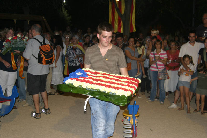 Allà, Joaquim Miranda, fundador de l'Aula de Música de Vilassar de Dalt va llegir el manifest unitari i on les entitats i l'Ajuntament van realitzar la tradicional Ofrena Floral.