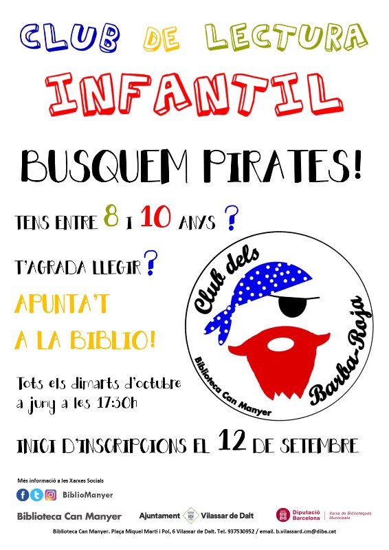 Amb el setembre tornen les activitats setmanals a la Biblioteca can Manyer. A partir del 12 de setembre s'obren les inscripcions per al Club dels Barba-Roja, el club de lectura infantil i també per a les converses en anglès de cada dimecres.