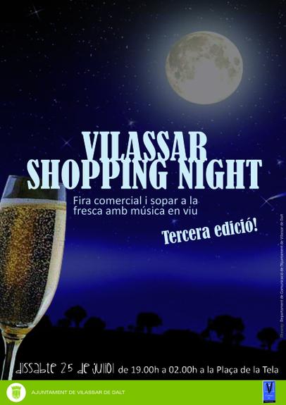 Shopping night 2015Aquest dissabte al vespre, el comerç de Vilassar surt al carrer per celebrar la tercera edició de la Shopping Night que començarà a les 7 de la tarda i s’allargarà fins la matinada amb música en viu i sopar a la fresca.