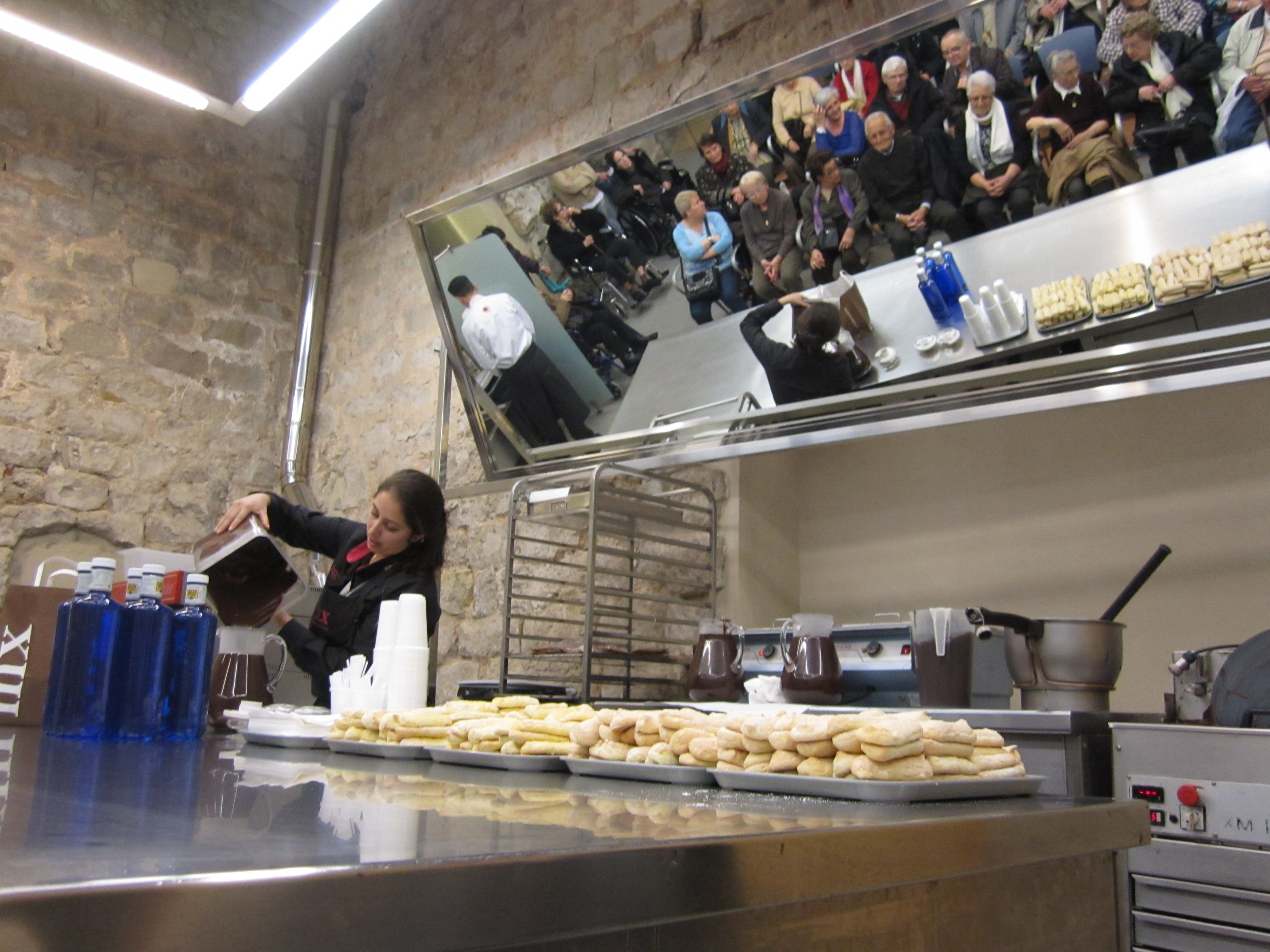 Després d'una visita guiada pel Museu els participants a l’activitat van poder berenar xocolata desfeta amb melindros.