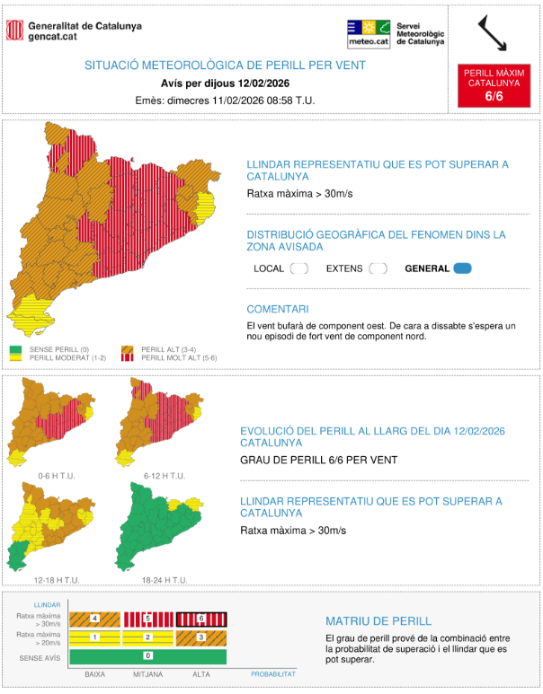 L'Ajuntament de Vilassar de Dalt activa en fase d'alerta el Pla bàsic d'emergències municipal per les fortes ventades previstes per demà dijous 12 de febrer.