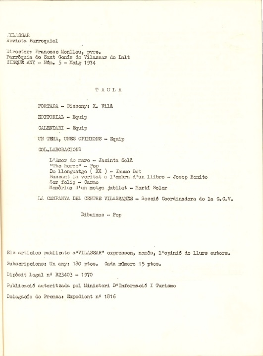Gràcies a la col·laboració entre l’Arxiu Municipal de Vilassar de Dalt i l’Arxiu Comarcal del Maresme, s’han digitalitzat i posat a disposició per a consulta online les publicacions locals de Vilassar de Dalt conservades a l’hemeroteca. Es tracta de La Veu. Butlletí parroquial (1964-1968), El Vilassar (1970-1974), L’Ase penjat (1985) i Ipsa Arca (1999-2004).