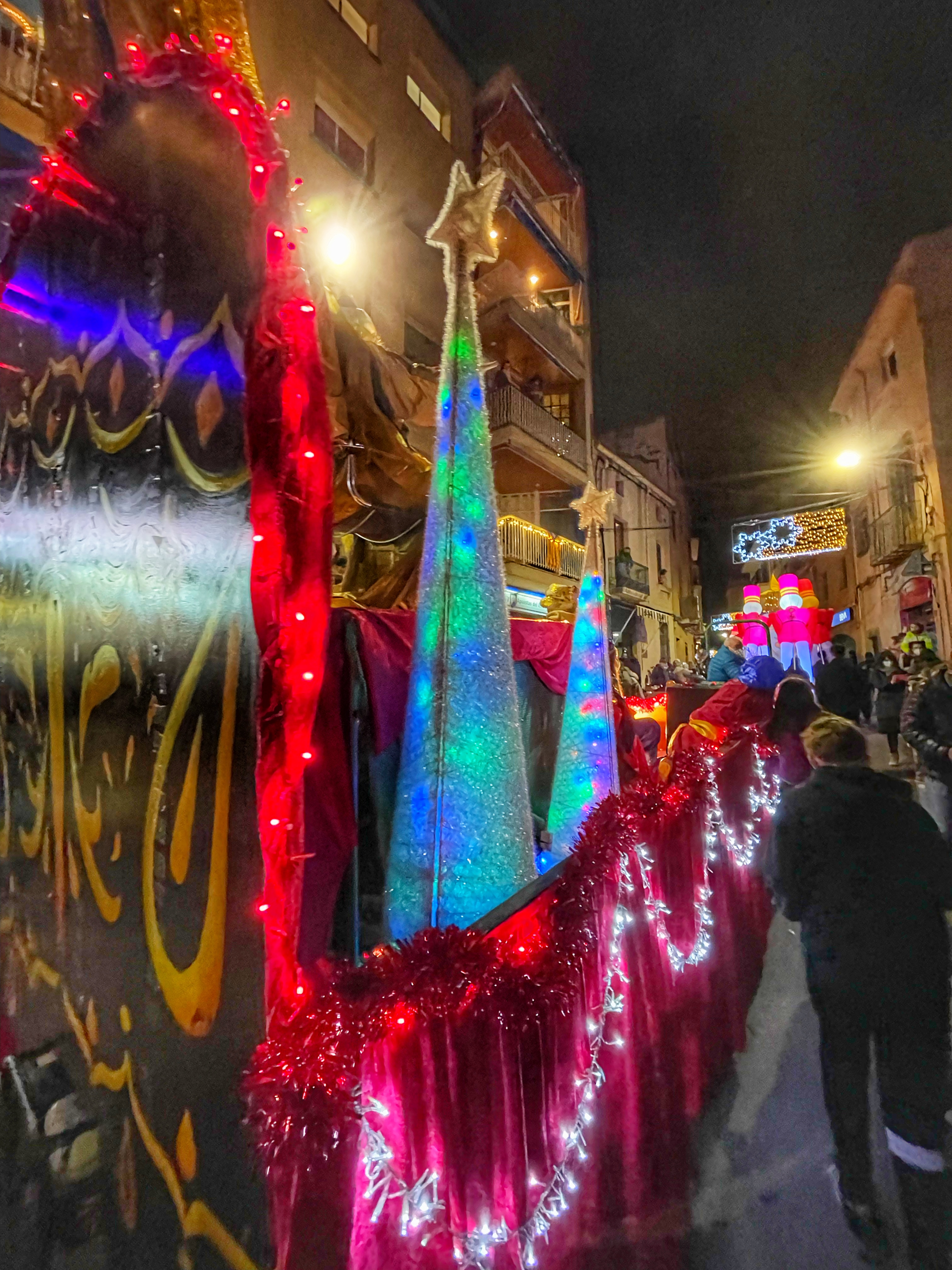 Centenars de nens i nenes van poder veure com aquest any els Reis Mags no van fallar a la cita i van recórrer els carrers del poble durant gairebé dues hores. Un seguici reial que obria amb figures lluminoses gegants i donava pas a les carrosses de Ses Majestats que obsequiaven amb caramels a tots els nens i nenes que els rebien al llarg de la cercavila. També van participar a la cavalcada les alumnes de l’Aula de Dansa i els Diabòlics i Tabalers Anònims que, com ja és habitual, porten un camió carregat de carbó per aquells i aquelles que no s’han portat del tot bé.